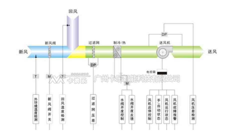 卡滨乐风机控制柜组装PLC可编程控制系统,系统具备远程BA对接接口通讯,MODBUS RTU协议,能有效的兼容其他控制系统的驳接,实现控制对象的远程操控。