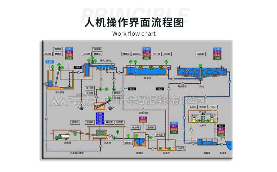 卡滨乐污水处理系统控制柜实现一体自动化污水处理控制。控制柜体内装置了PLC可编程控制器、变频器、传感器、反应器、电机保护器以及配套的网络服务器、故障报警器、人机交互界面、用户终端、高清触摸屏、进出水泵、罗茨鼓风机等。